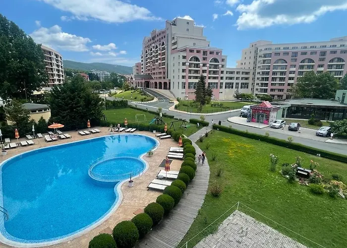 Situovaný v 1,4 km od Zábavní park Action Aquapark, apartmán Sunny Beach Plaza 100 M Sea má řadu zařízení, včetně parkování zdarma, bazén s horkou vodou a sezónní venkovní bazén. Nabízí kuchyňku s rychlovarnou konvicí, kuchyňským nádobím a pračkou, místo se nachází 20 minut chůze od centra města Sluneční pobřeží.